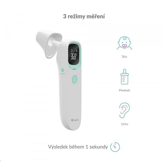 TrueLife Care Q10 BT nabízí tři režimy měření teploty. Kromě klasického měření tělesné teploty dokáže změřit i předměty, povrchy, nebo tekutiny. Snadno tak můžete zkontrolovat třeba kojeneckou stravu nebo čaj. U měření tělesné teploty osob máte možnost volby mezi měřením z teploty z ucha, nebo čela. Teploměr disponuje i dětským režimem, který je uzpůsoben pro osoby mladší 12 let.