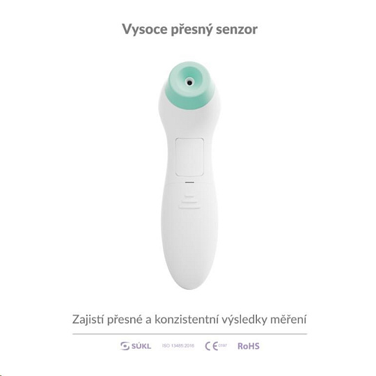 Díky technologii infračerveného záření dokáže teploměr změřit teplotu velmi přesně, s maximální odchylkou 0,1 °C.