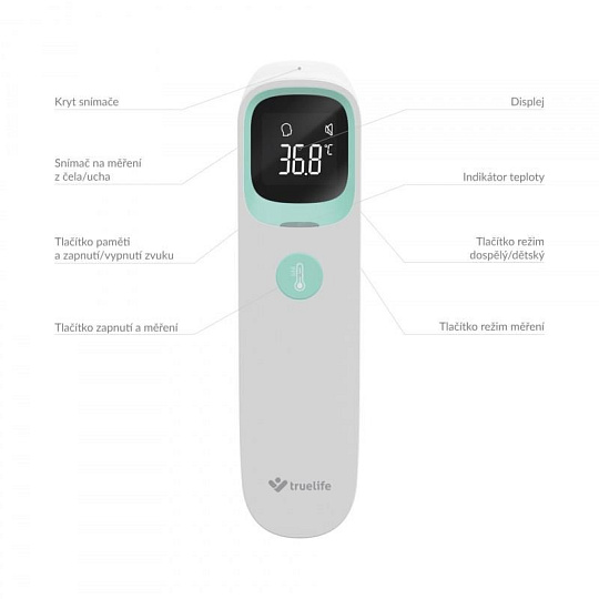 TrueLife Care Q9 nabízí tři režimy měření teploty. Kromě klasického měření tělesné teploty dokáže změřit i předměty, povrchy, nebo tekutiny. Snadno tak můžete zkontrolovat třeba kojeneckou stravu nebo čaj. U měření tělesné teploty osob máte možnost volby mezi měřením z teploty z ucha, nebo čela. Teploměr disponuje i dětským režimem, který je uzpůsoben pro osoby mladší 12 let.