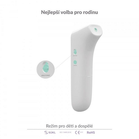 Teploměr nabízí dětský režim, který je uzpůsoben pro osoby mladší 12 let. Jeho zapnutí indikuje symbol miminka na displeji.