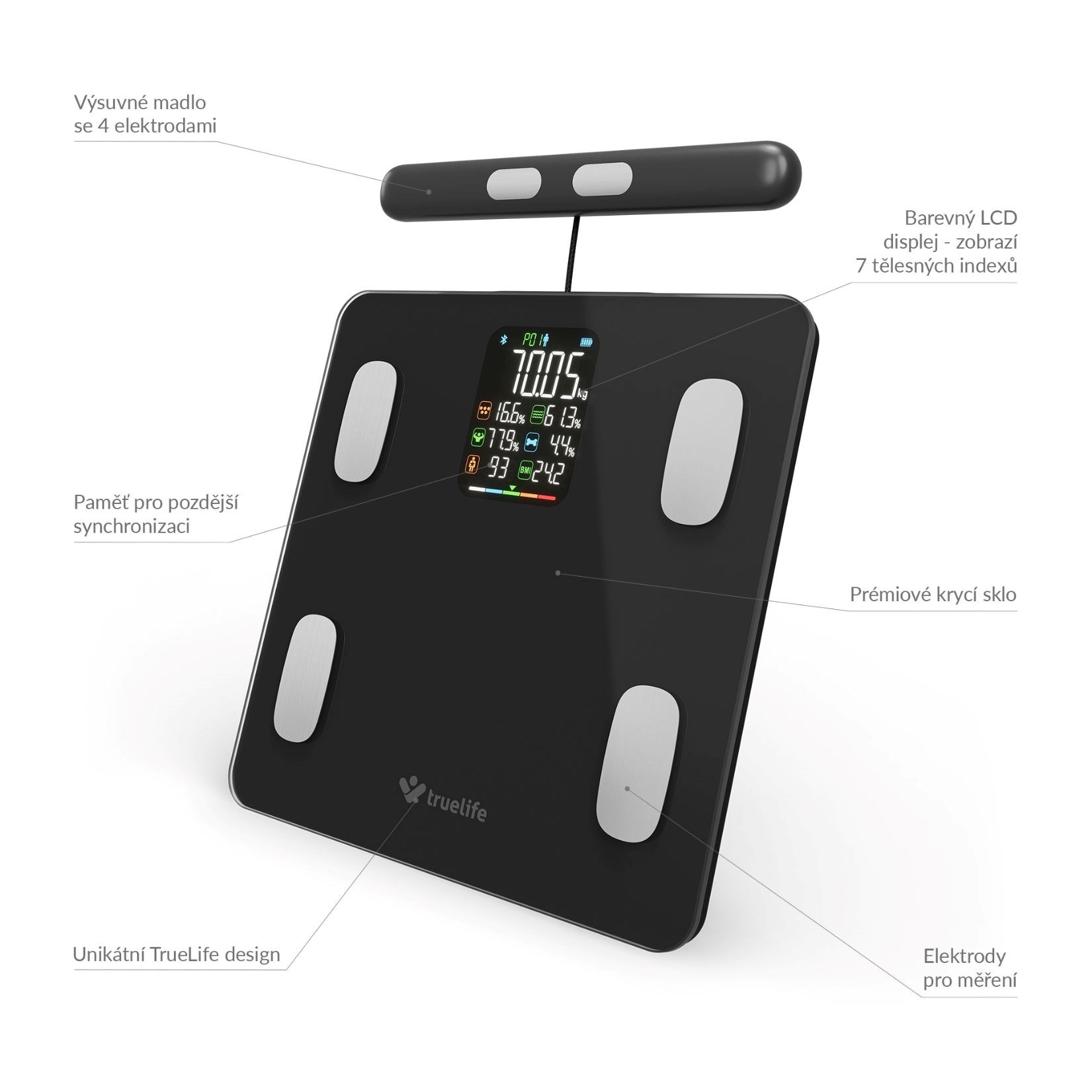 TrueLife FitScale W8 BT Black - osobní diagnostická bluetooth váha
