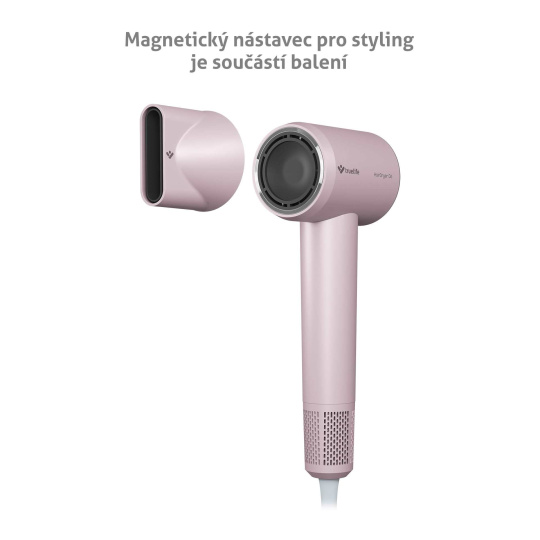 Součástí balení fénu je také praktický koncentrační nástavec, který snadno a rychle nainstalujete pomocí magnetu. Umožňuje styling vlasů a cílené foukání i fixaci bez narušení účesu.