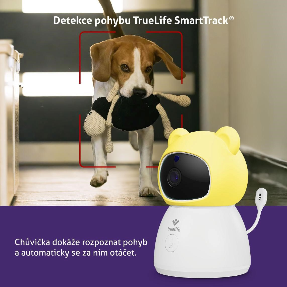 Technologie TrueLife SmartTrack® chytře sleduje pohyb a automaticky otáčí kameru tam, kde se něco děje. Vaše dítko tak zůstává v záběru, i když zrovna zkoumá každý kout pokoje.