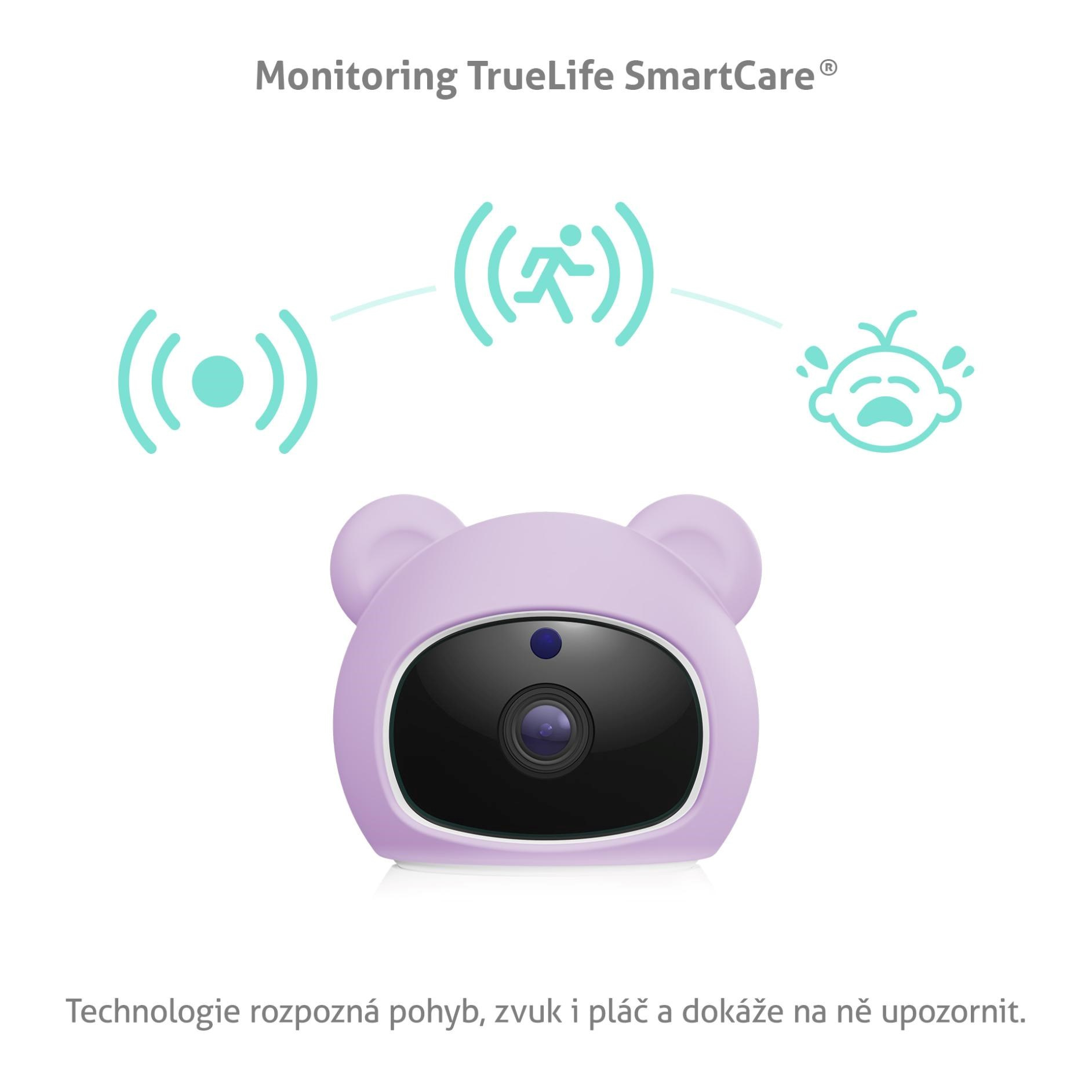 Když nemůžete být neustále u postýlky, chůvička za vás pozorně poslouchá. Funkce TrueLife SmartCare® sleduje každý pohyb, pláč i ostatní zvuky v místnosti a okamžitě vás upozorní, když je potřeba zasáhnout. Součástí chůvičky jsou také senzory na teplotu a vlhkost, které pomáhají vytvořit prostředí, kde se vašemu děťátku bude dobře spát, růst a odpočívat.