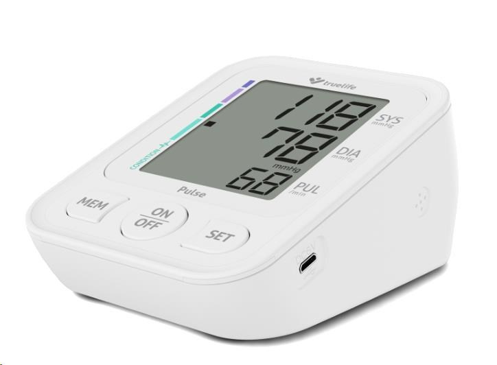 Kvůli pravidelnému měření tlaku se nemusíte stresovat zbytečnou cestou k lékaři. S Truelife Pulse můžete mít svůj krevní tlak pod kontrolou i v pohodlí domova. Měření tlaku s ním zvládne každý, správný postup je součástí manuálu. Tento praktický přístroj ocení zejména cukrovkáři nebo lidé s jinými potížemi, které mají vliv na krevní oběh. Ať už vás trápí nízký tlak, hypertenze, nebo jen chcete mít své zdraví plně pod kontrolou, Truelife Pulse vám pomůže si hodnoty hlídat.