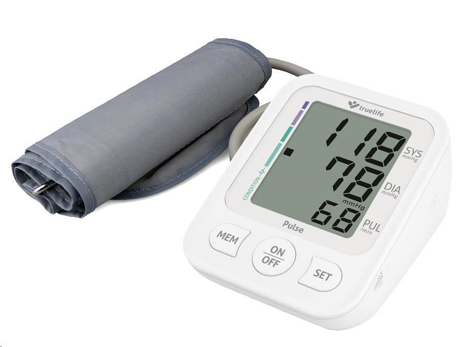 Tlakoměr Truelife Pulse využívá oscilometrickou metodu měření tlaku a funguje na principu nafouknutí manžety, která zajišťuje maximální přesnost naměřených hodnot. Navíc jeho ovládání je velmi jednoduché a vše podstatné zvládnete stiskem tlačítka START/STOP. Naměřené hodnoty zobrazuje velký a dobře čitelný třířádkový displej.
