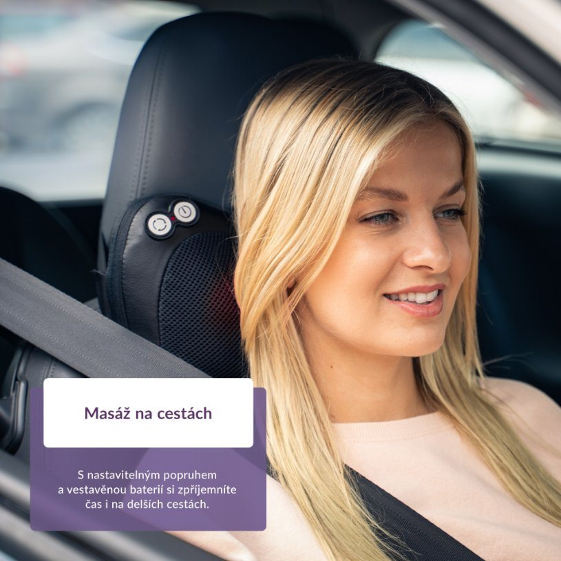 Masáž si užijete ve třech různých úrovních lišících se rychlostí otáčení hlavic tam a zpět a také k ní lze zapnout vyhřívání. Časovač je nastavený na 15 minut a každou minutu se automaticky změní směr otáčení. Provoz polštáře je zcela tichý, takže vaši chvilku relaxace nic neruší. K dispozici máte také návlek na nohy, protože ani na ně bychom při masáži neměli zapomínat. Masáž si můžete dopřávat třeba i při práci na počítači, kdy si polštář pomocí nastavitelného popruhu přichytíte k židli. Pro zajištění čistoty a hygieny stačí povlak vyrobený ze syntetické kůže a prodyšné síťoviny šetrné k pokožce otřít navlhčeným hadříkem.