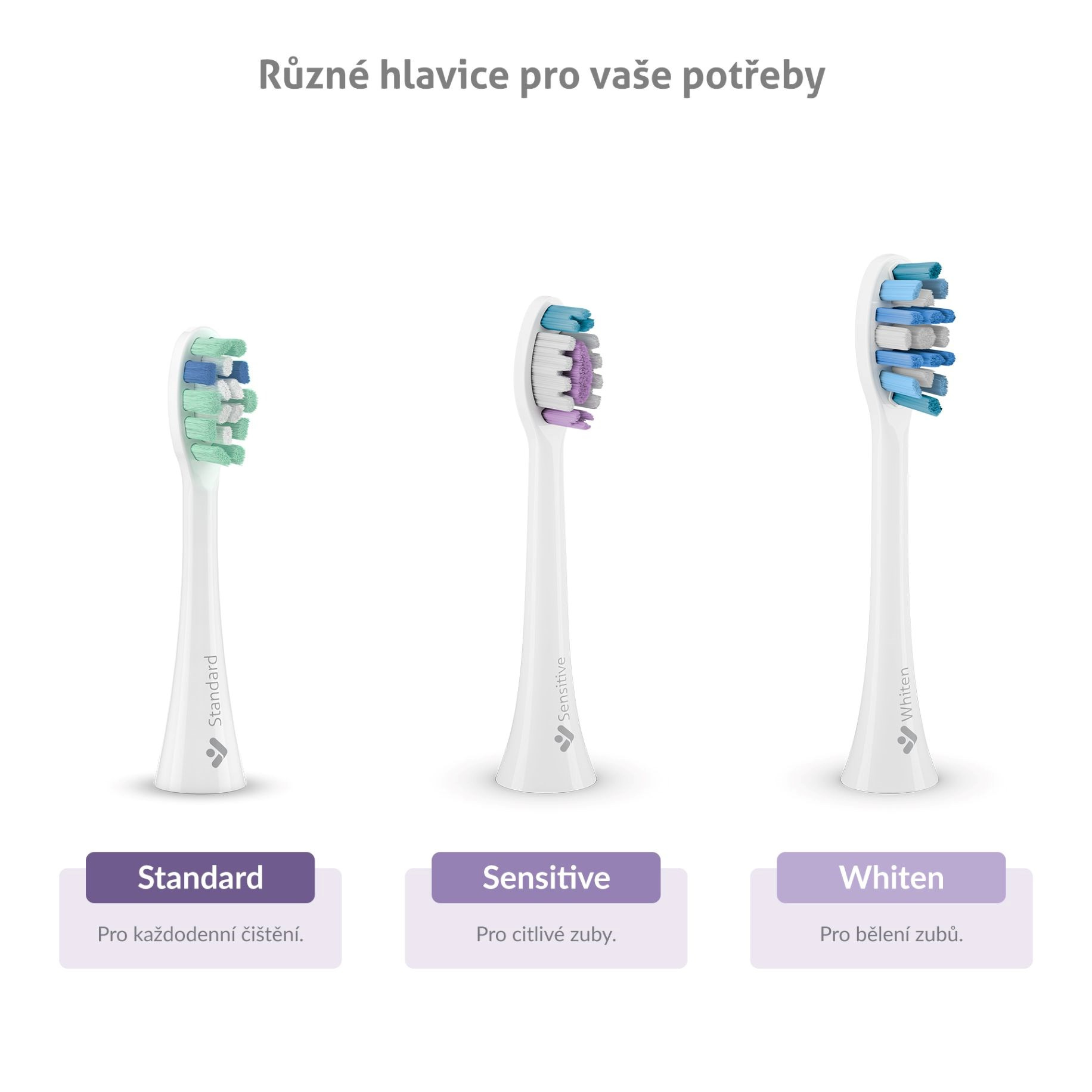 Balení obsahuje celkem 4 hlavice – 2x Standard a po jednom Sensitive a Whiten.