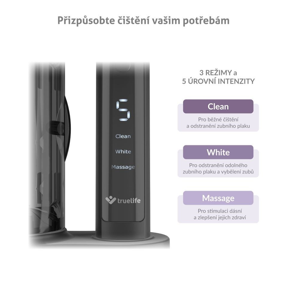 TrueLife SonicBrush K150 UV – Sonický zubní kartáček s 15 čistícími módy a UV sterilizátorem