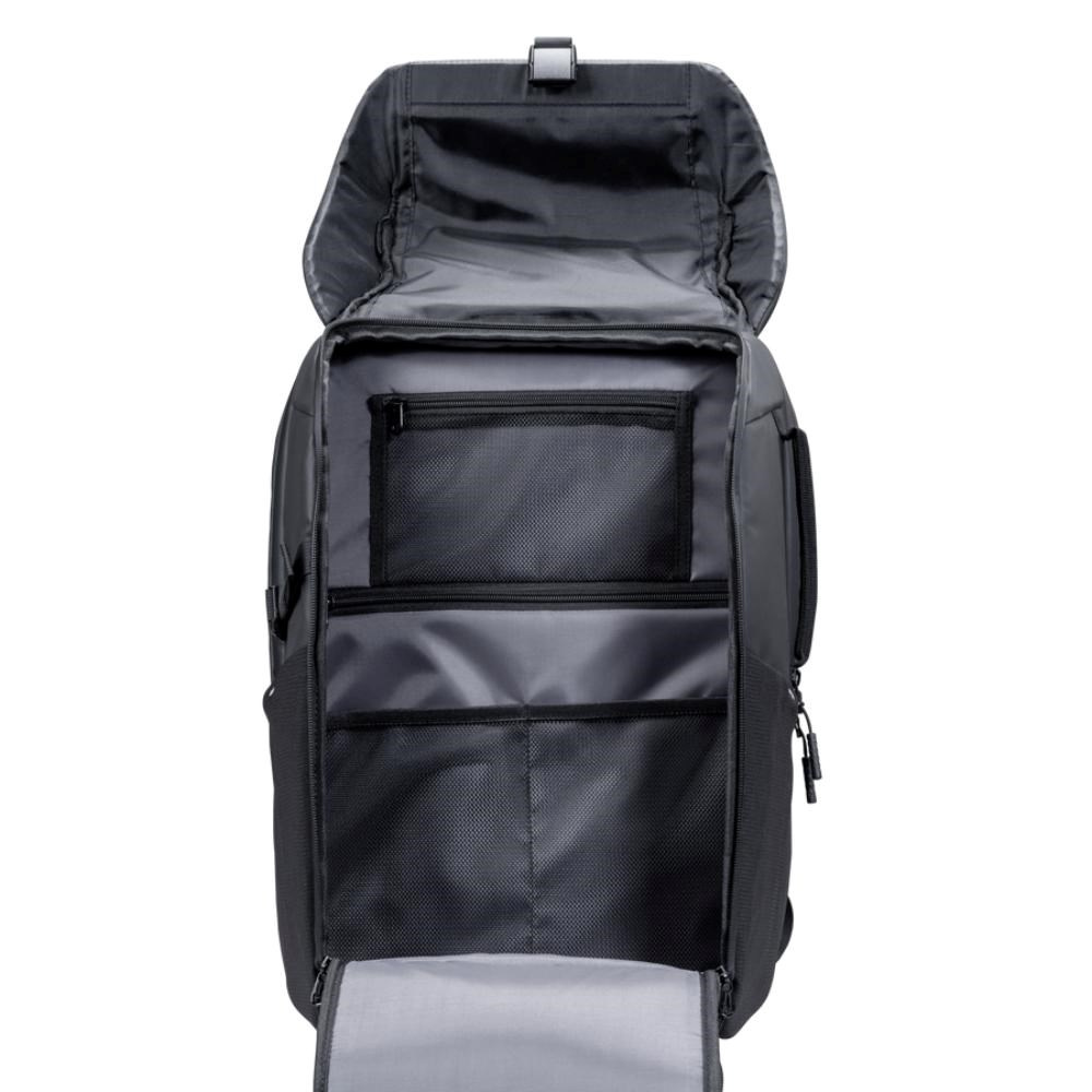 Už se nikdy nemusíte bát deště. Díky voděodolným materiálům s PU povrchovou úpravou, zipům a hornímu krytu s certifikací IPX4 zůstanou vaše věci v suchu. Odolná přihrádka chrání notebooky do velikosti 17 palců, zatímco integrovaná kapsa na AirTag vám umožní mít batoh neustále pod dohledem.