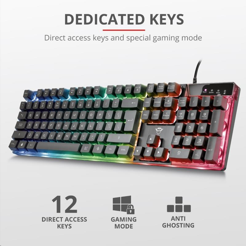 TRUST herní klávesnice GXT 835 Azor Illuminated Gaming Keyboard CZ/SK