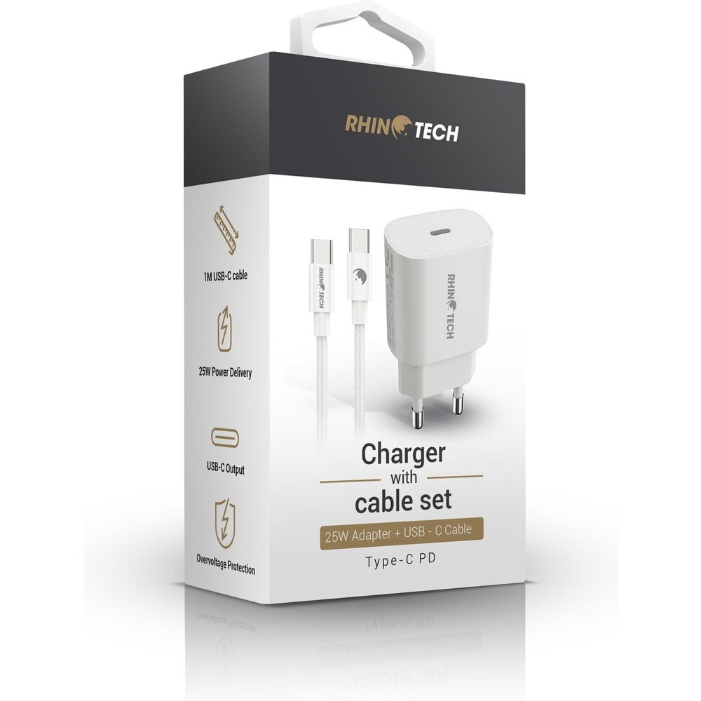 RhinoTech 25W PD nabíjecí adaptér s kabelem USB-C na USB-C 60W 1M, bílá
