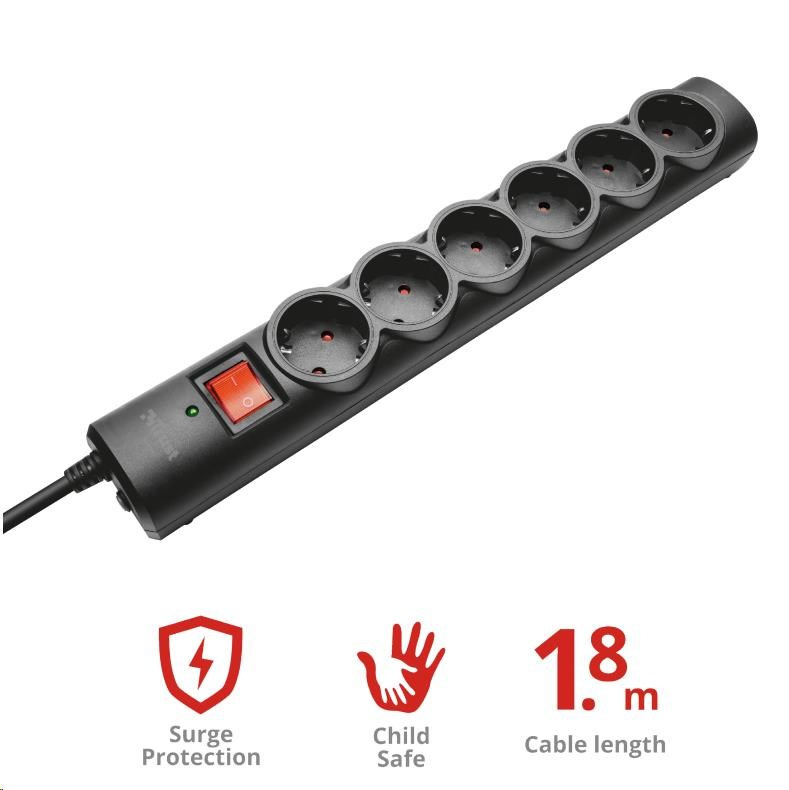 - 6 surge protected power sockets to connect and power devices safely, comes with a cable length of 1.8m