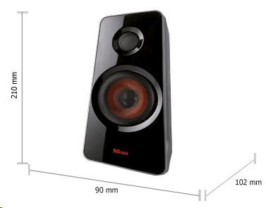 Systém GXT 38 dosahuje maximálního výkonu 120 W, což stačí na vytvoření „zvukové stěny“. Součástí sady je velký dřevěný subwoofer se 7palcovým reproduktorem, který vytváří mocné basy, které doslova cítíte. Satelitní reproduktory produkují zvuk optimální kvality ve středním a vysokém pásmu. Ovladačem na boku subwooferu můžete samostatně upravit míru basů a připravit si tak zvuk podle svých představ.