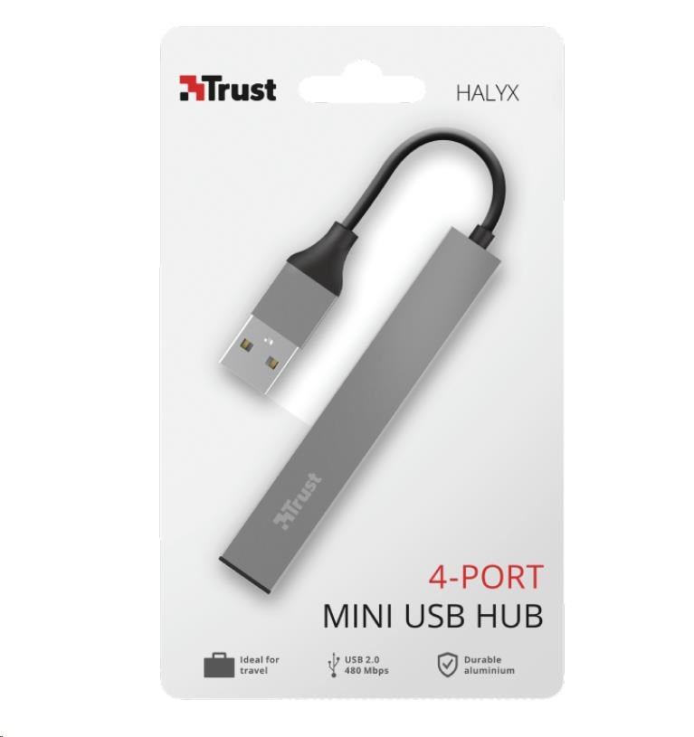 TRUST rozbočovač HALYX, Aluminium 4-Port Mini USB Hub, 10cm
