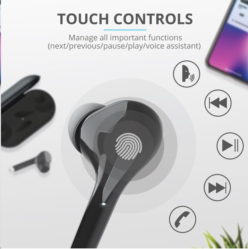 TRUST sluchátka Nika Touch Bluetooth Wireless Earphones - black