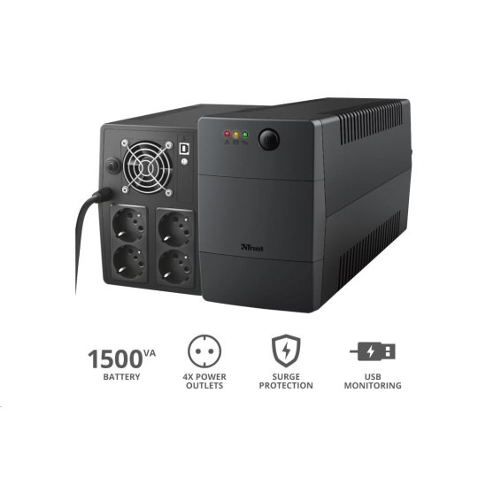 TRUST UPS Paxxon 1500VA UPS with 4 standard wall power outlets