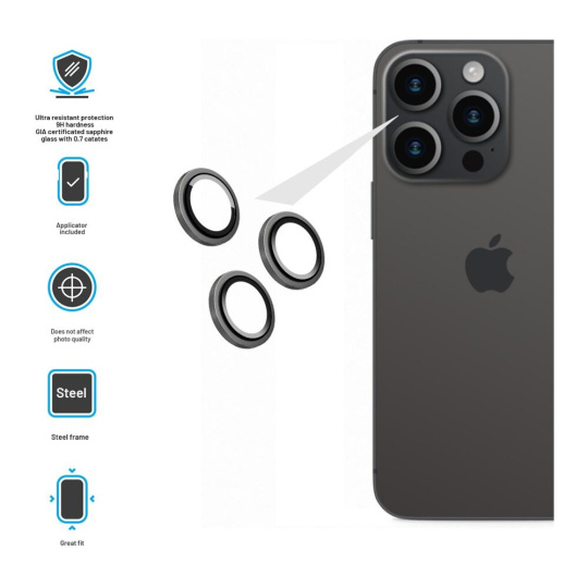 FIXED Sapphire Camera Glass ochranná skla Apple iPhone 15 Pro/15 Pro Max stříbrná