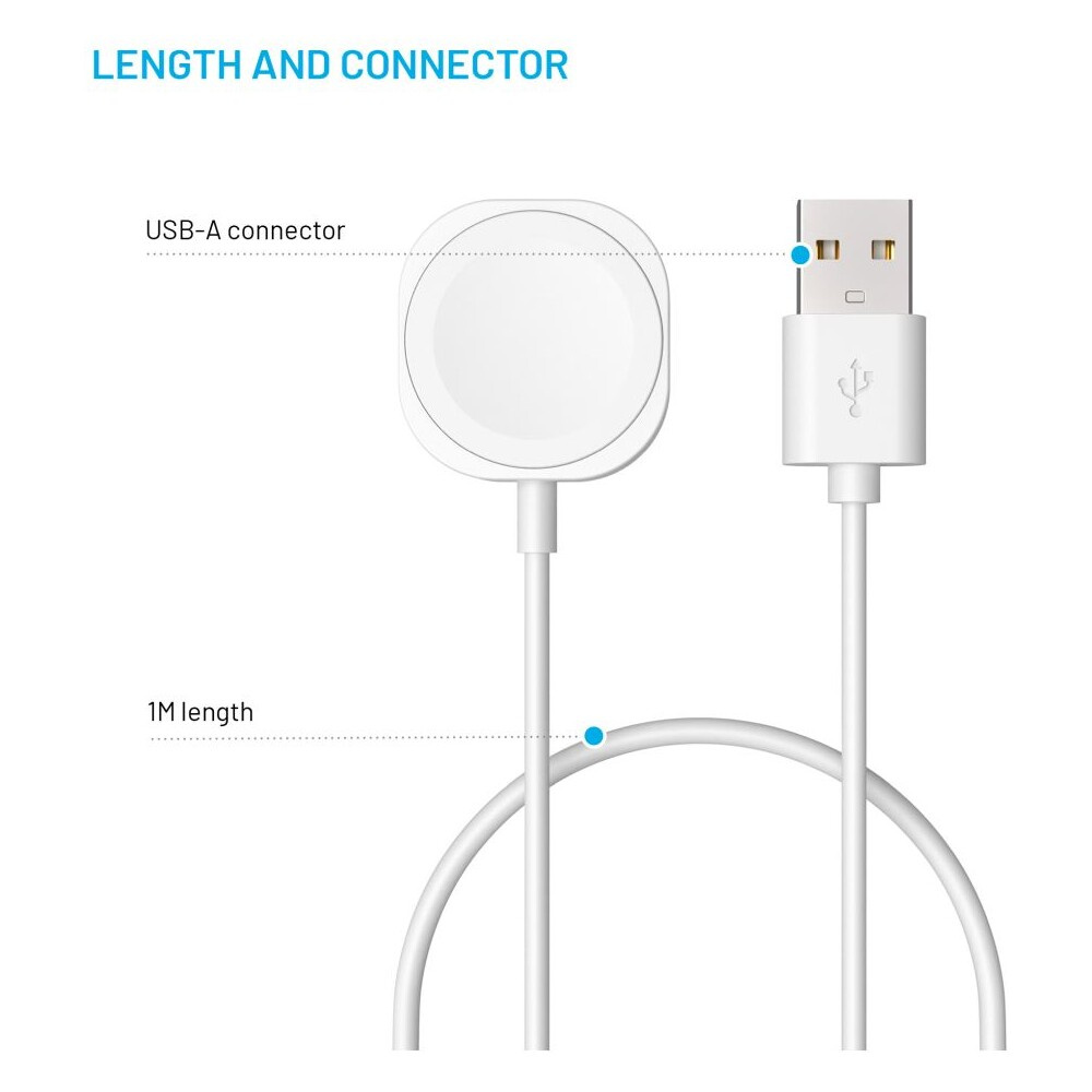 FIXED USB-A nabíjecí kabel pro Apple Watch bílý