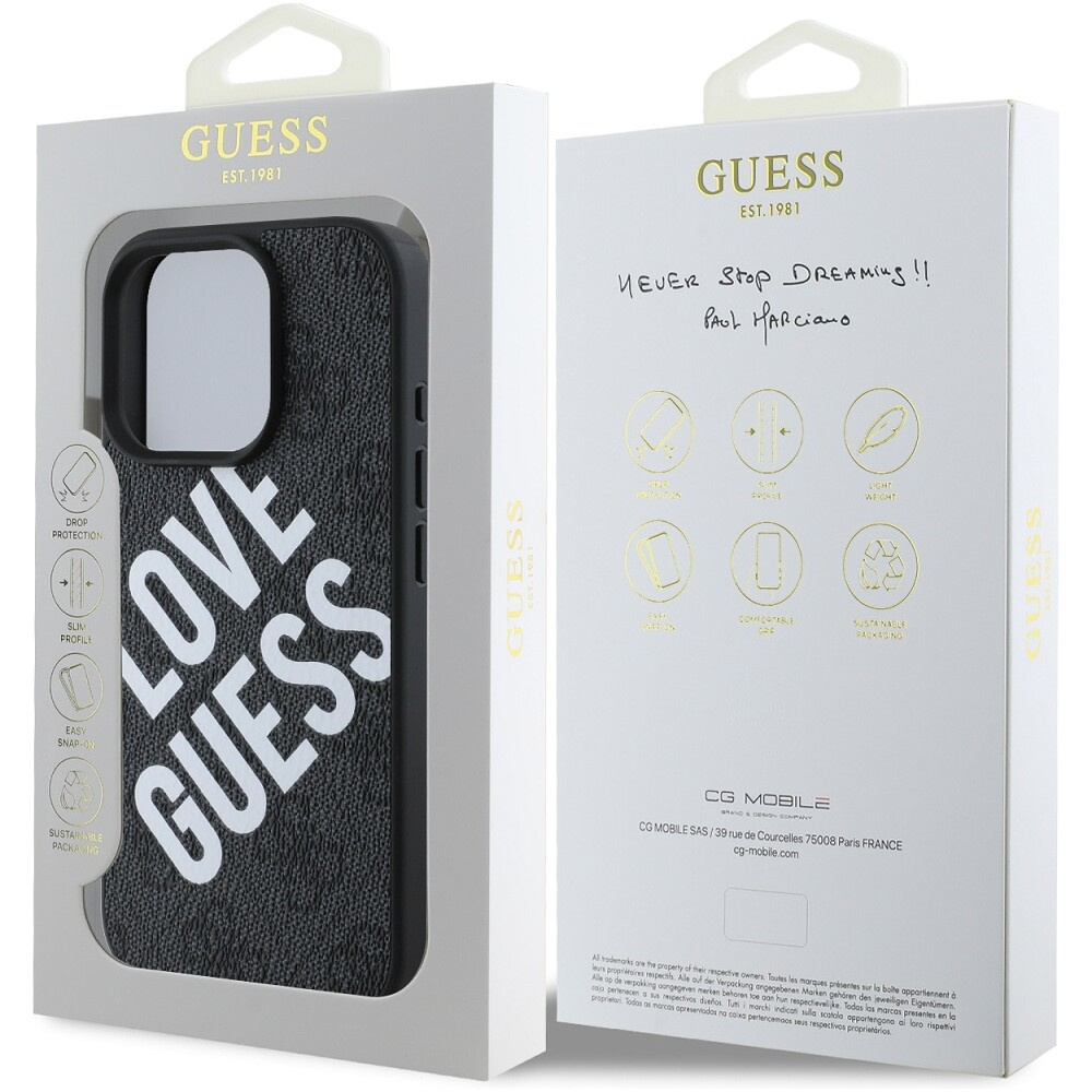 Guess PU Leather 4G Big Love Logo MagSafe kryt iPhone 16 Pro černý
