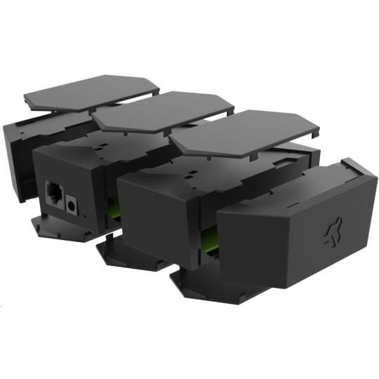 RTMX-N-001-prt-005 je sada dvou kusů (sponí a vrchní část) náhradních spojovacích plastů ve tvaru šestiúhelníků, kterými se spojují jednotlivé části / moduly routeru Turris MOX.