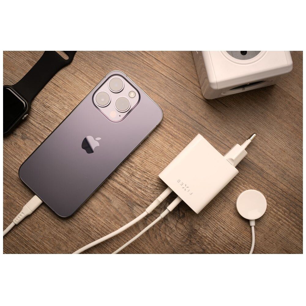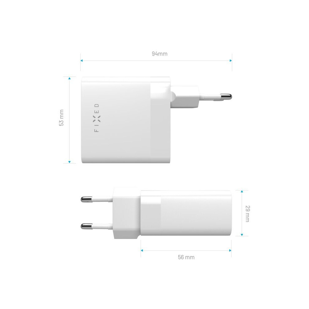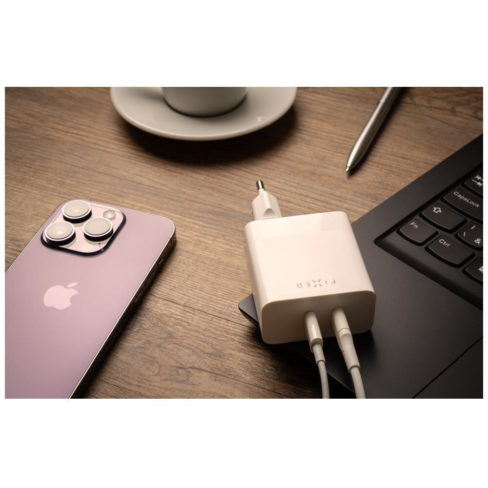 FIXED nabíječka s 2x USB-C výstupem, PD, 65W, bílá