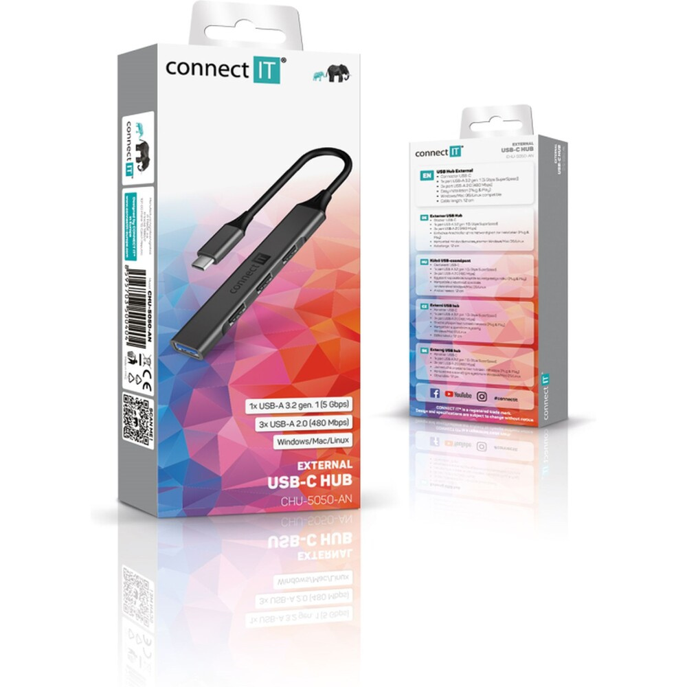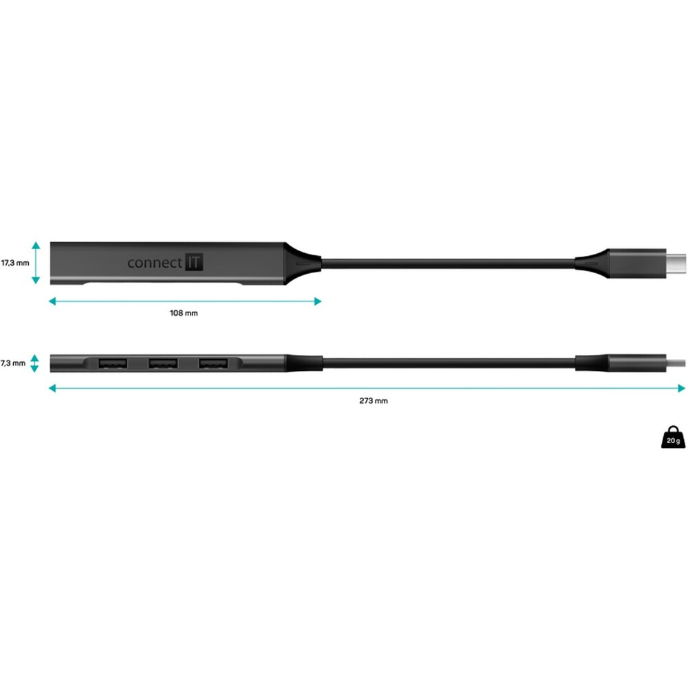 CONNECT IT USB-C hub, (1xUSB-A 3.0, 3xUSB-A 2.0), externí antracitový