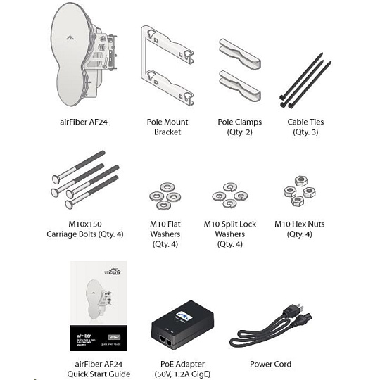 Ubiquiti airFiber AF24 je určený pro páteřní spoje, pracuje v nelicencované pásmo 24 GHz s reálnou propustností až 1,4 Gbps! Jednotka je vybavena dvěma parabolickými anténami z nichž jedna slouží pro příjem a druhá pro vysílání dat, technologie MIMO. Na výběr je několik režimů činnosti: FDD (Frequency Division Duplex) a HDD (Hybrid Division Duplex), díky kterým airFiber dosahuje vysoké rychlosti a spektrální účinnost. HDD systém nabízí nízké latence FDD systémů a spektrální účinnost TDD systémů. Podporován je Full Duplex i Half Duplex režim, transparentní L2 bridge a AES-128 bitové kryptování.