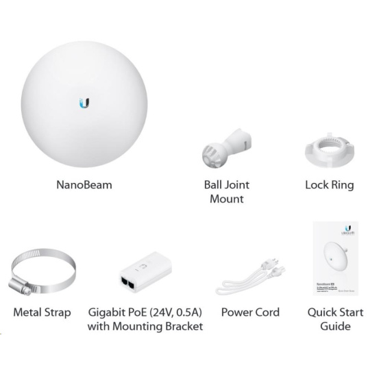 Obsah balení: - Zařízení - Gigabit PoE napájecí adaptér 24V/0.5A - Napájecí kabel - Stahovací páska - Plastový kloub + plastový zámek