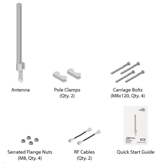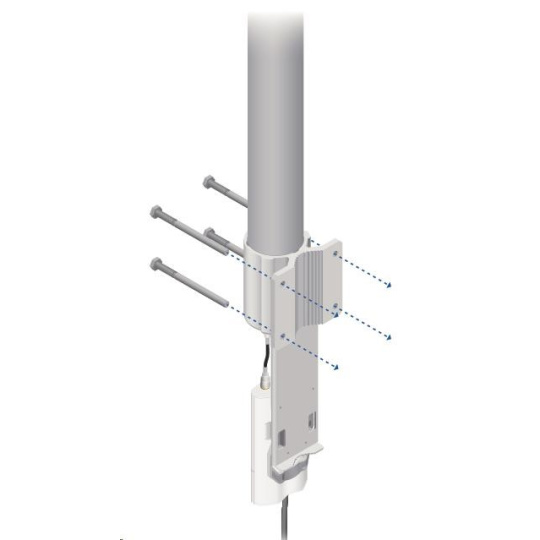 Jedná se o robusní řešení 13dbi všesměrové antény pro přístupové body pracující v pásmu 2.4GHz a využívajících standardu 802.11n v kombinaci s technologií MIMO. Anténa disponuje dvěma RSMA-female konektory. Součástí dodávky jsou dva voděodolné RSMA pigtaily pro propojení s jednotkou Rocket M2, držák pro tuto jednotku a montážní sada na stožár, viz. obr.