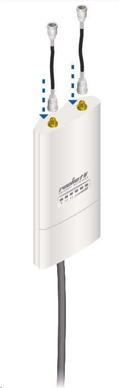 Jedná se o robusní řešení 13dbi všesměrové antény pro přístupové body pracující v pásmu 2.4GHz a využívajících standardu 802.11n v kombinaci s technologií MIMO. Anténa disponuje dvěma RSMA-female konektory. Součástí dodávky jsou dva voděodolné RSMA pigtaily pro propojení s jednotkou Rocket M2, držák pro tuto jednotku a montážní sada na stožár, viz. obr.