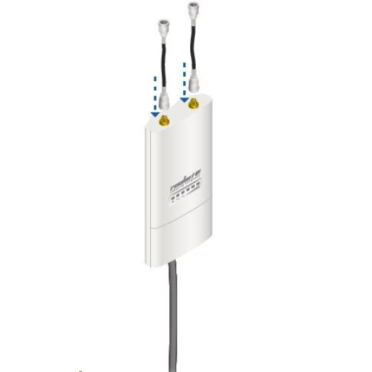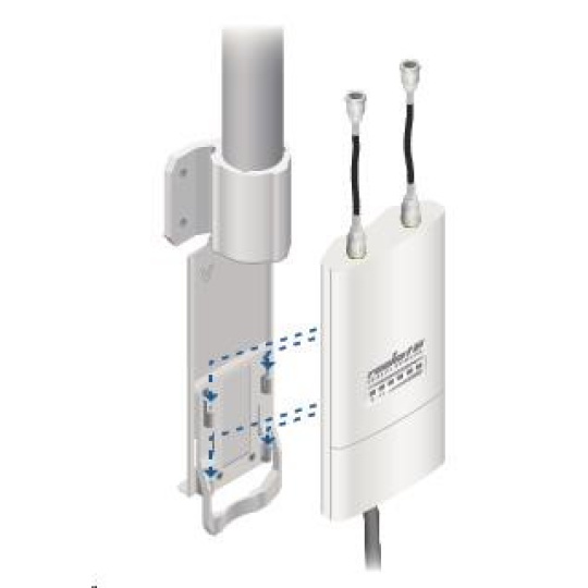 Jedná se o robusní řešení 13dbi všesměrové antény pro přístupové body pracující v pásmu 5GHz a využívajících standardu 802.11n v kombinaci s technologií MIMO. Anténa disponuje dvěma RSMA-female konektory. Součástí dodávky jsou dva voděodolné RSMA pigtaily pro propojení s jednotkou Rocket M5, držák pro tuto jednotku a montážní sada na stožár, viz. obr.