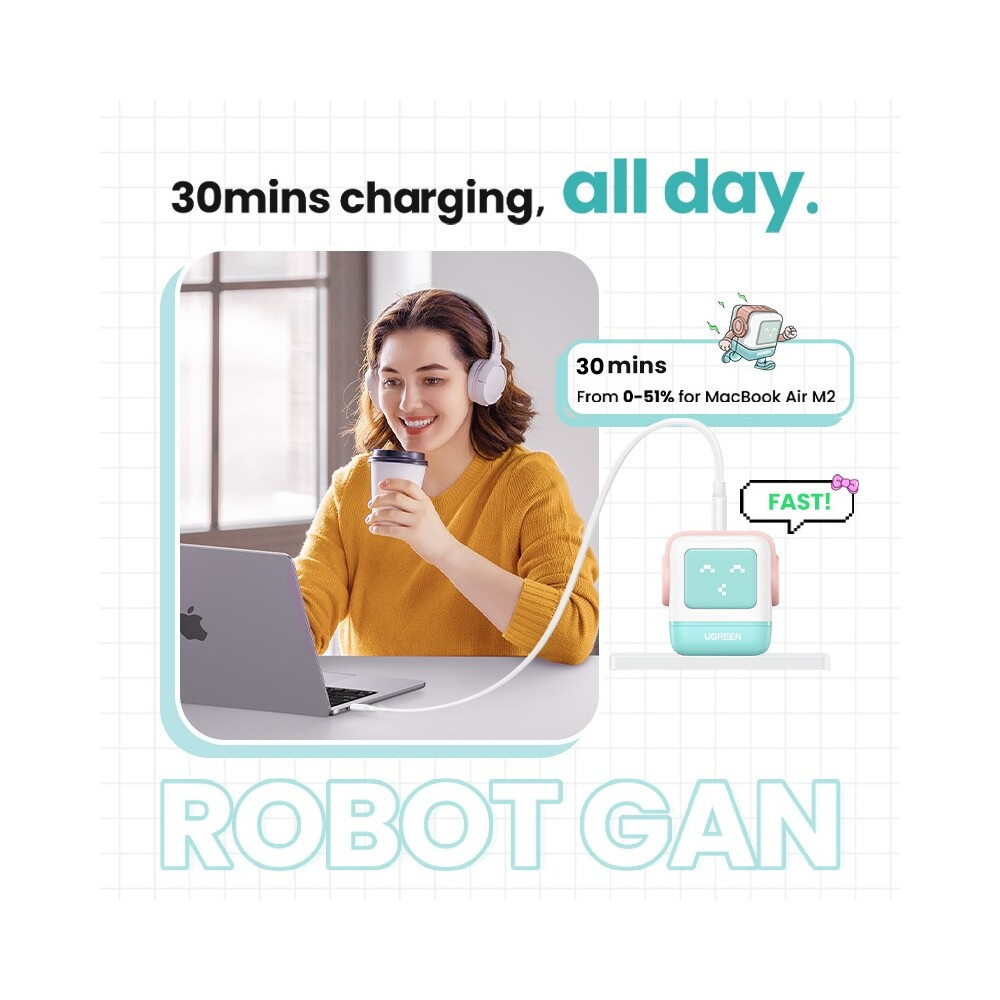 UGREEN Uno RG 65W GaN Fast Charge nabíječka mentolová