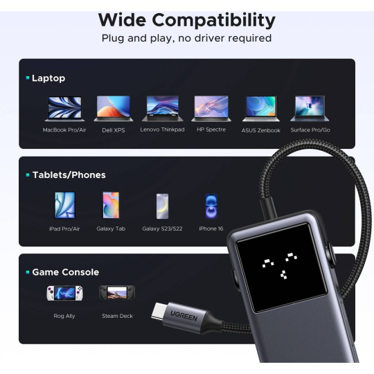 UGREEN Uno 6v1 Multiportový USB-C HUB s HDMI/USB 3.2 A/USB 3.2 C/PD Power Converter šedý