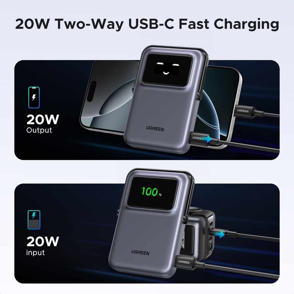UGREEN Uno MagSafe/Qi2 Powerbanka se stojánkem, 10000 mAh, 20W, tmavě šedá