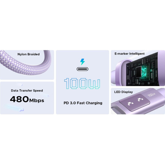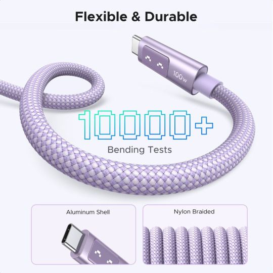 UGREEN Uno USB-C/USB-C napájecí kabel 100W 1m fialový