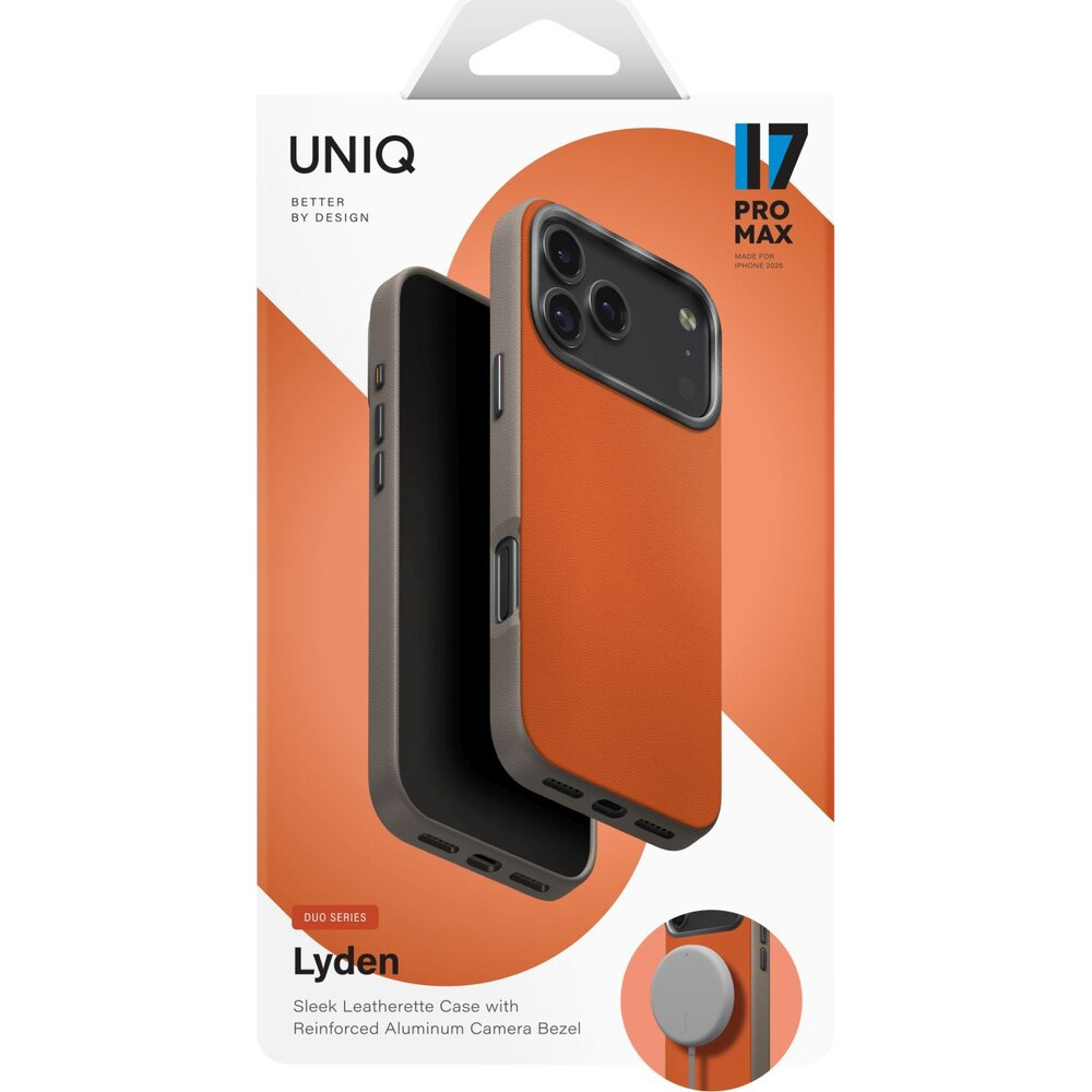 UNIQ Lyden DS Premium Leatherette MagClick MagSafe kryt iPhone 17 Pro Max Flame Orange