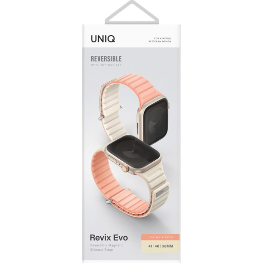 UNIQ Revix Evo oboustranný řemínek Apple Watch 42/41/40/38mm (růžový/krémový)