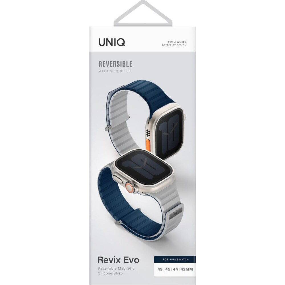 UNIQ Revix Evo oboustranný řemínek Apple Watch 49/46/45/44/42mm (tmavě modrý/křídově bílý)