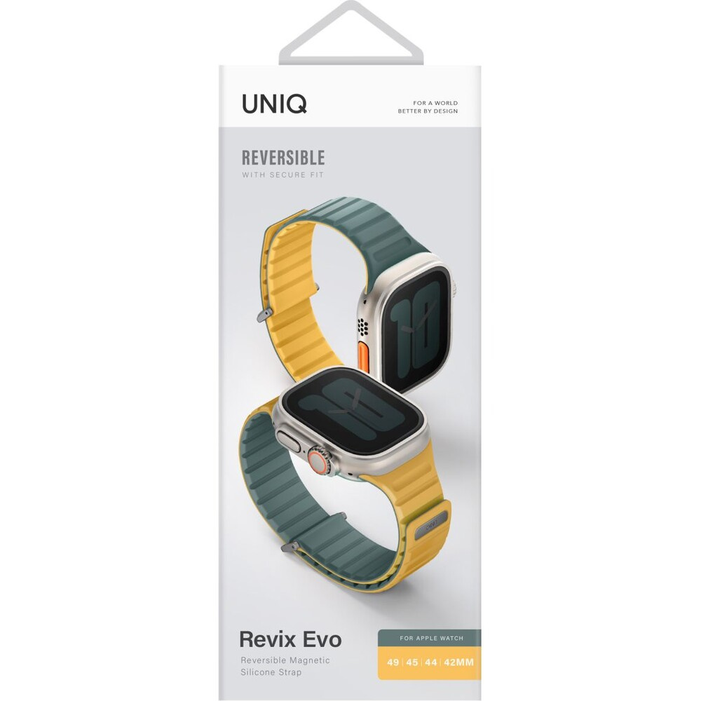 UNIQ Revix Evo oboustranný řemínek Apple Watch 49/46/45/44/42mm (zelený/žlutý)
