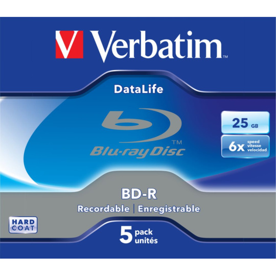 VERBATIM BD-R SL Datalife (5-pack)Blu-Ray/Spindle/6x/25GB WHITE BLUE SURFACE