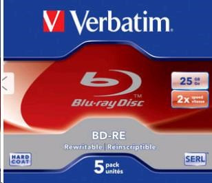 VERBATIM BD-RE(5-pack)Blu-Ray/Jewel/2x/25GB