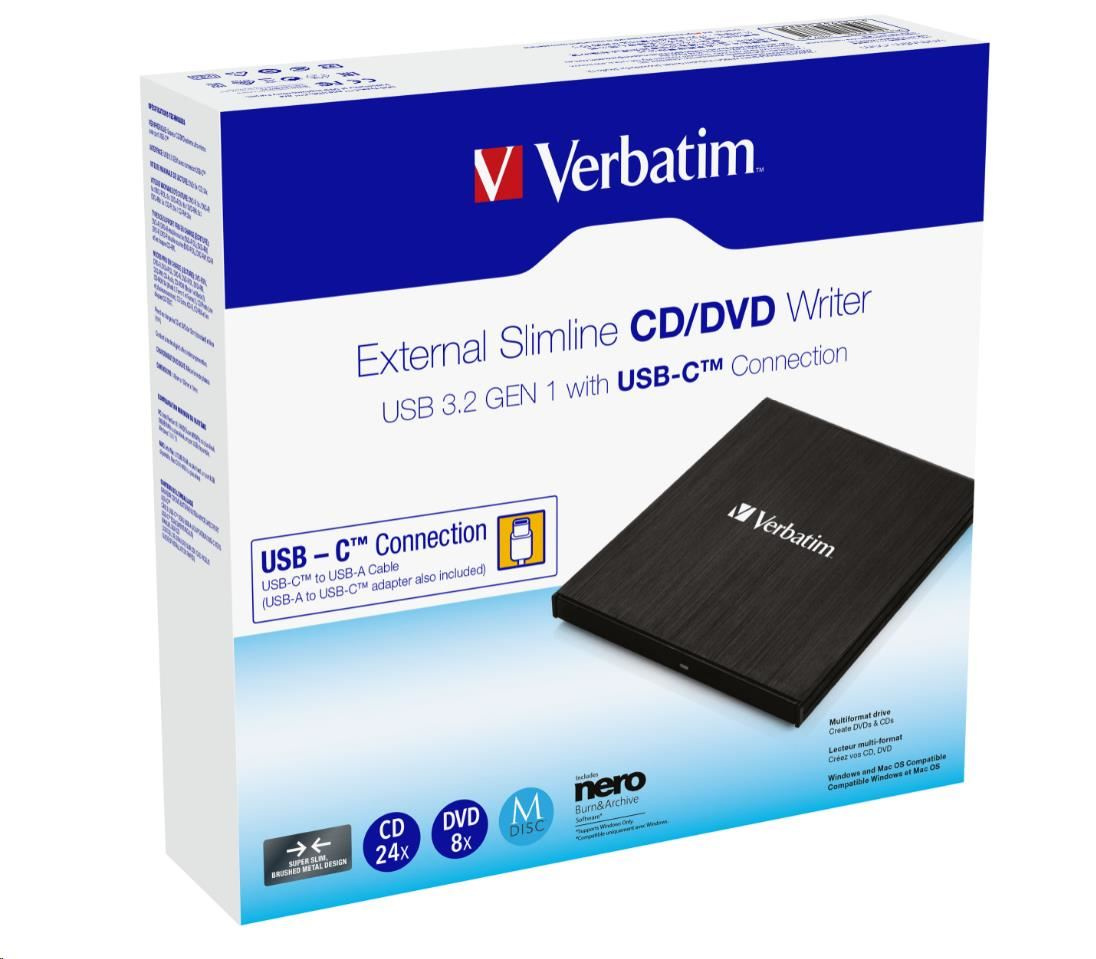 VERBATIM externí mechanika DVD-RW Rewriter USB-C, černá + NERO