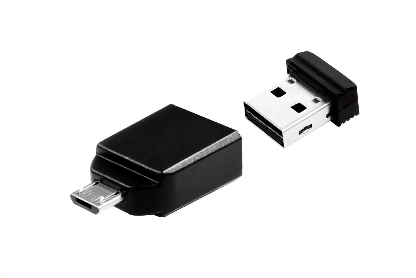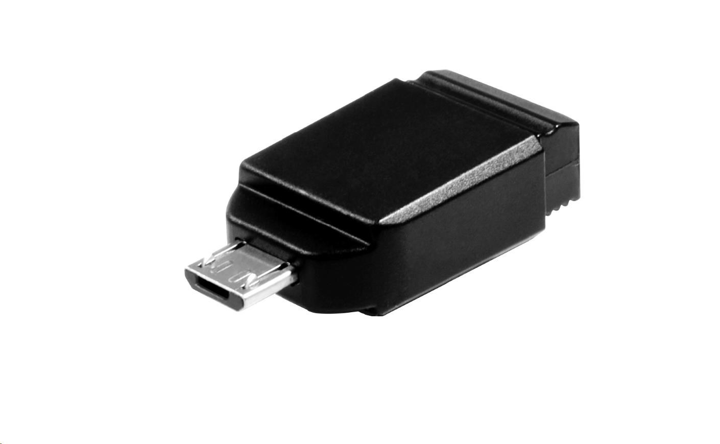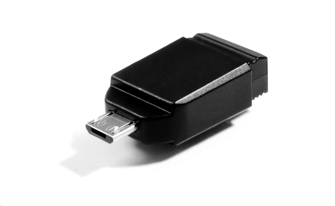 VERBATIM Flash Disk 32GB Store 'n' Stay Nano + micro USB OTG adaptér, USB 2.0, černá