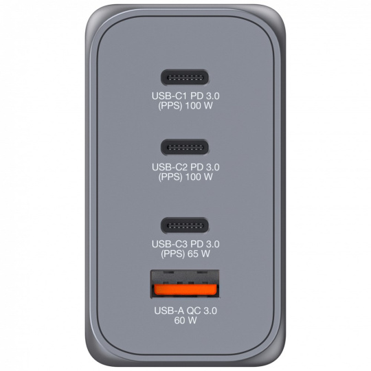 | Výkon | USB-C1 Max 100W USB-C2 Max 100W USB-C3 Max 65W USB-A Max 60W Dohromady Max 189W |