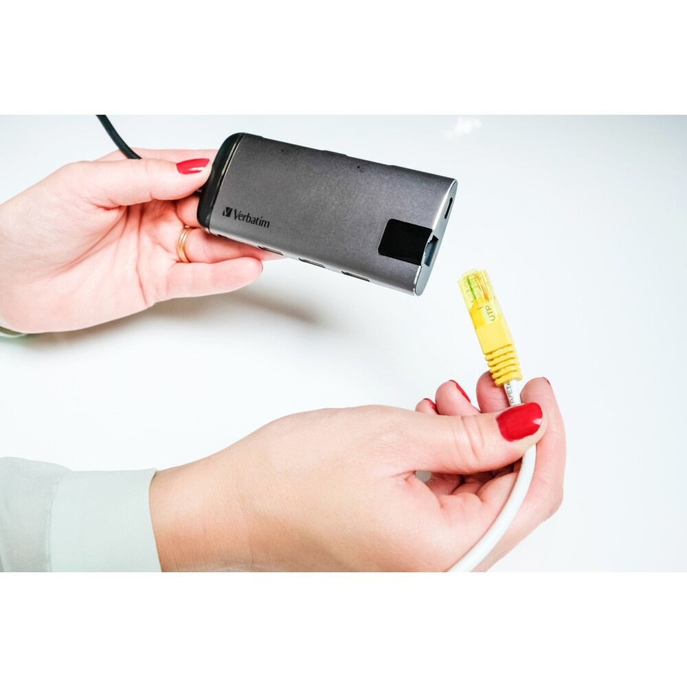 Verbatim USB-C Multiport HUB, 3x USB 3.0, 1x USB-C, HDMI, LAN, SD, microSD dokovací stanice šedá
