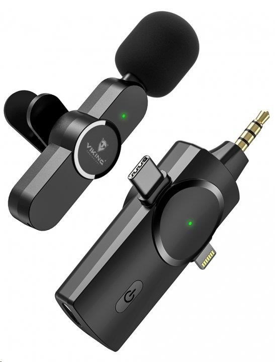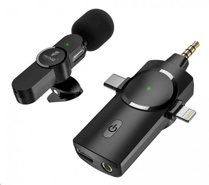 Viking bezdrátový mikrofon s klipem M360, konektor USB-C / Lightning / 3,5 mm jack