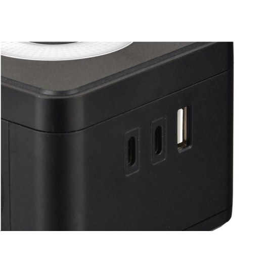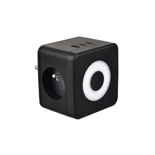 Viking síťový adaptér Y23L, 2x 230 V, 1x USB-A, 2x USB-C, dotykové světlo, černá