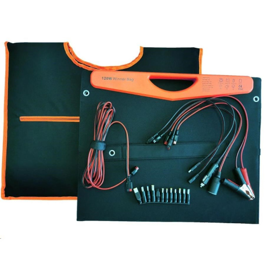 Modul je skládací, lehký a prostorově úsporný, a proto je vhodný pro mnoho použití. Panel lze pomocí integrovaných podpěr postavit pod úhlem 45°, aby byl zajištěn nejlepší možný výkon solárního panelu.Solární panel VIKING WB120, dokáže nabíjet vaše zařízení až do napětí 19,8V a 6,06A!