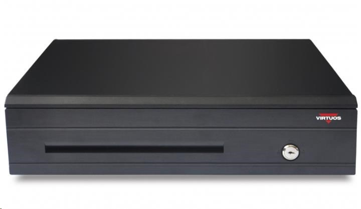 Virtuos pokladní zásuvka C425C, s kabelem 24V, kov. držáky, 9-24V, černá